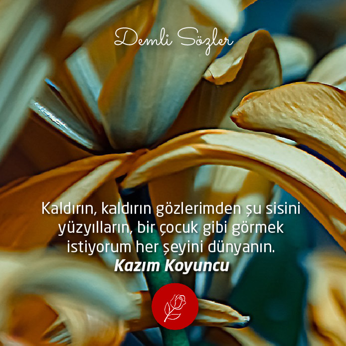 "Kaldırın, kaldırın gözlerimden, şu sisini yüzyılların, bir çocuk gibi görmek istiyorum her şeyini dünyanın."
