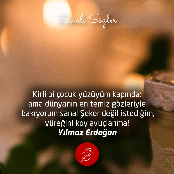 "Kirli bi çocuk yüzüyüm kapında; ama dünyanın en temiz gözleriyle bakıyorum sana! Şeker değil istediğim, yüreğini köy avuçlarıma!"