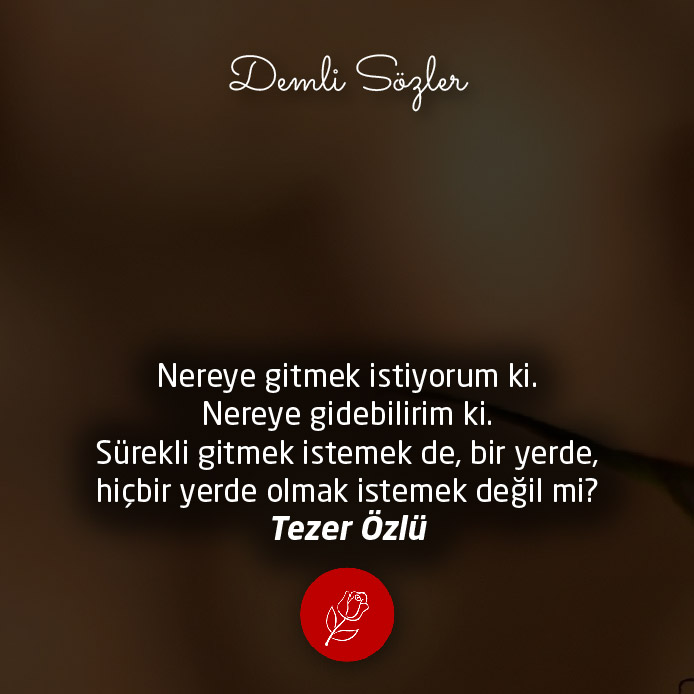 "Nereye gitmek istiyorum ki. Nereye gidebilirim ki. Sürekli gitmek istemek de, bir yerde, hiçbir yerde olmak istemek değil mi?"