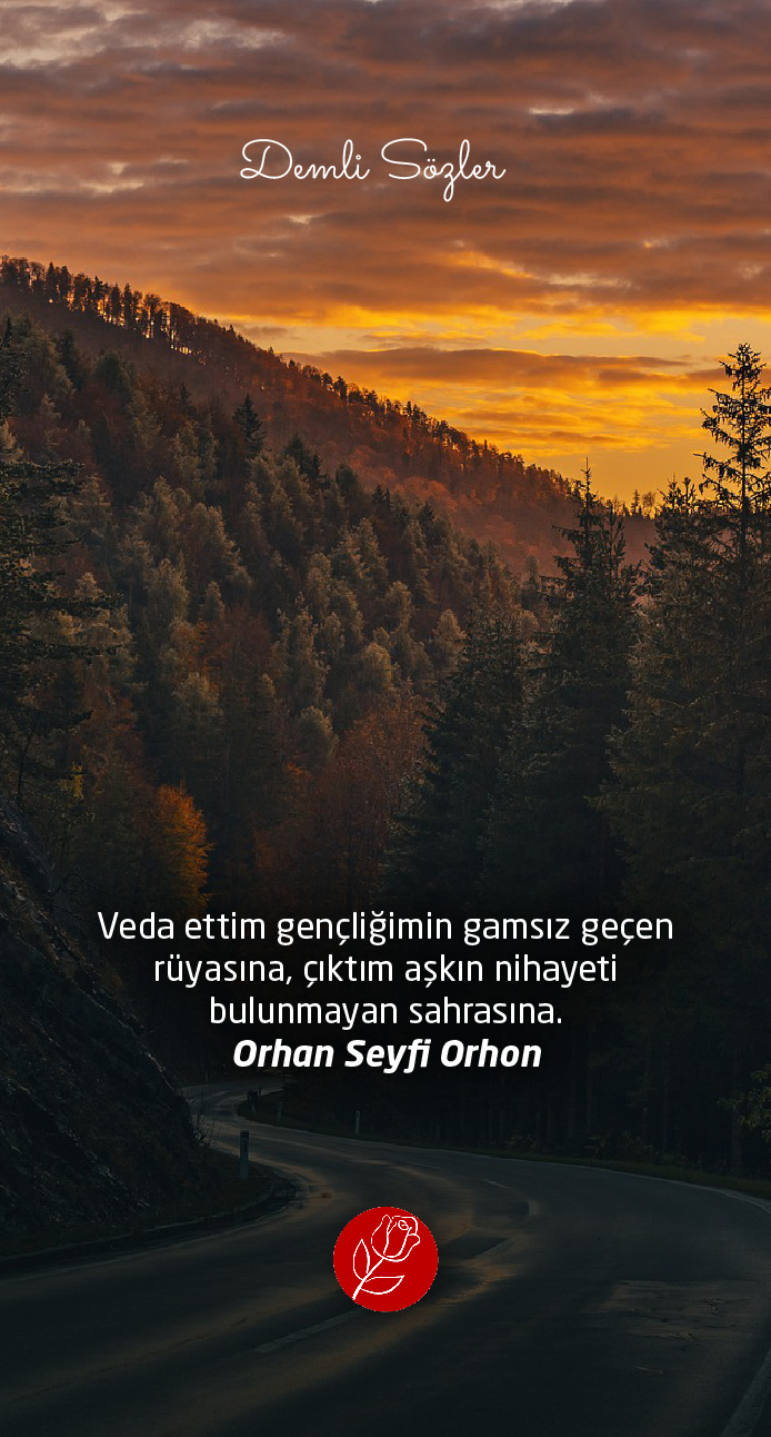 "Veda ettim gençliğimin gamsız geçen rüyasına, çıktım aşkın nihayeti bulunmayan sahrasına."