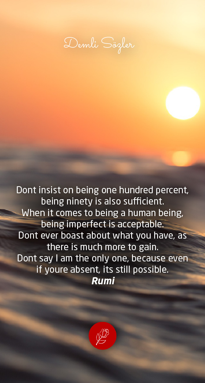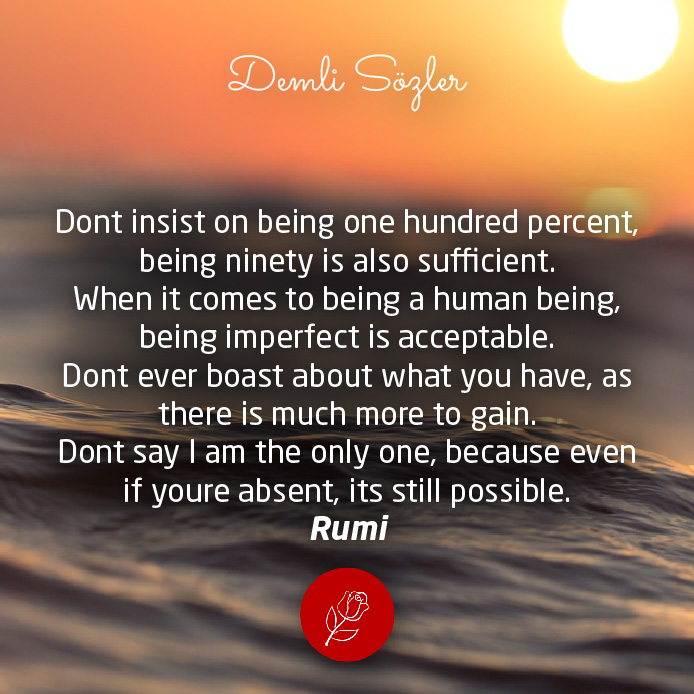 "Dont insist on being one hundred percent, being ninety is also sufficient. When it comes to being a human being, being imperfect is acceptable. Dont ever boast about what you have, as there is much more to gain. Dont say I am the only one, because even if youre absent, its still possible."