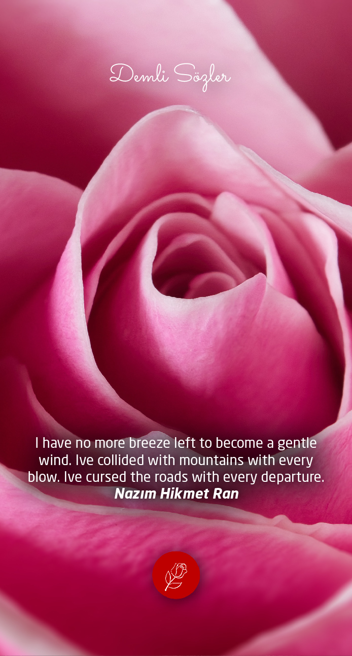 This quote reflects a sense of exhaustion and weariness, suggesting that the speaker has expended all their energy and enthusiasm. They describe themselves as a gentle breeze (meltem) that has now lost even that quality, having faced obstacles and challenges in life. The speaker has become like a force of nature that constantly clashes with mountains and curses at roads, indicating a sense of frustration and difficulty.