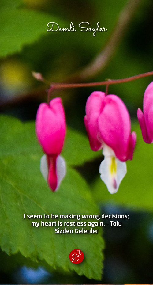 The expression "I seem to be making wrong decisions; my heart is restless again." conveys a sense of self-awareness about the speaker's tendency to make decisions that might not be the best. The phrase "my heart is restless again" suggests that the speaker is experiencing inner turmoil or agitation, possibly indicating a lack of certainty or peace of mind regarding their choices.