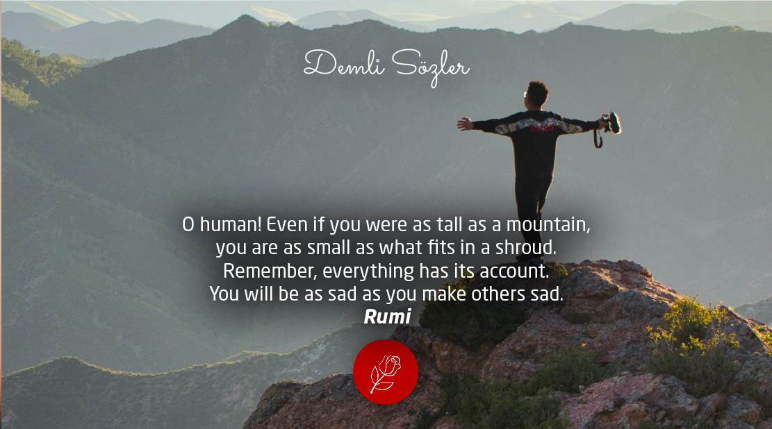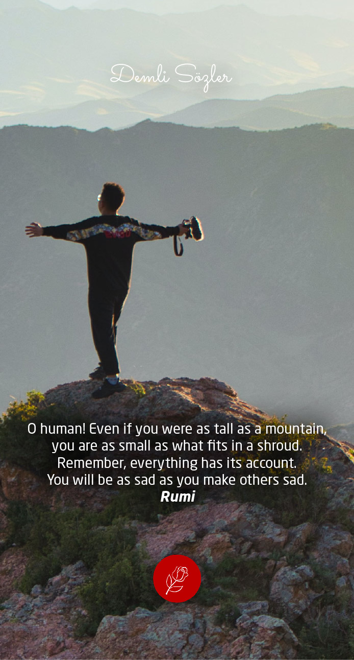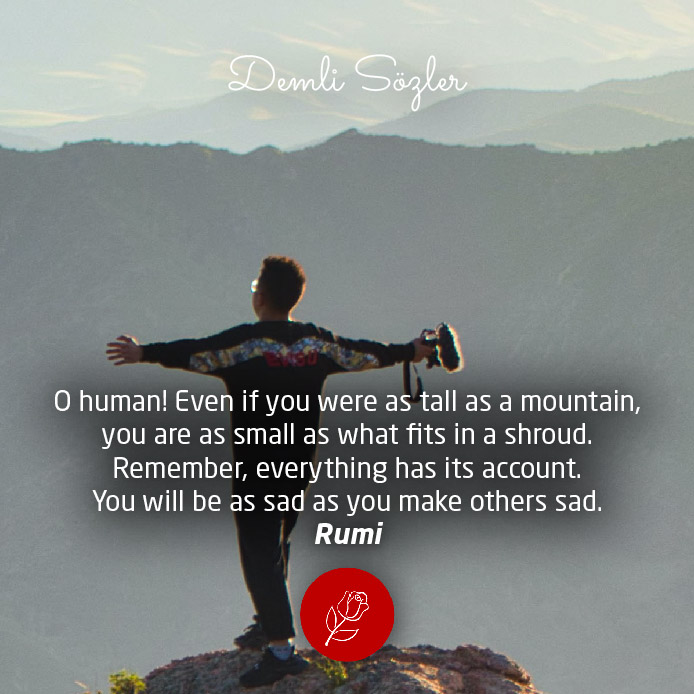 "O human! Even if you were as tall as a mountain, you are as small as what fits in a shroud. Remember, everything has its account. You will be as sad as you make others sad."