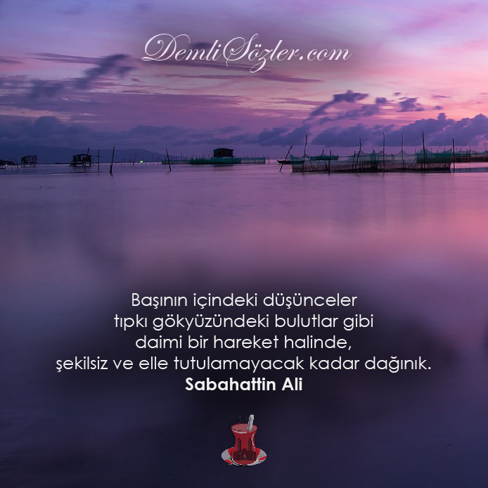 "Başının içindeki düşünceler tıpkı gökyüzündeki bulutlar gibi daimi bir hareket halinde, şekilsiz ve elle tutulamayacak kadar dağınık."