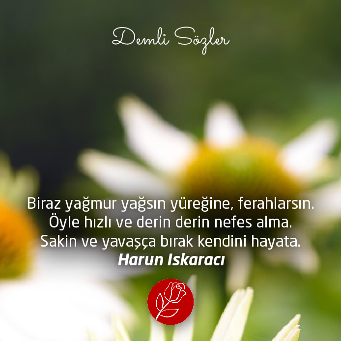 "Biraz yağmur yağsın yüreğine, ferahlarsın. Öyle hızlı ve derin derin nefes alma. Sakin ve yavaşça bırak kendini hayata."