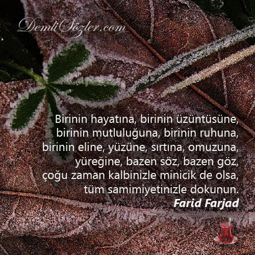 "Birinin hayatına, birinin üzüntüsüne, birinin mutluluğuna, birinin ruhuna, birinin eline, yüzüne, sırtına, omuzuna, yüreğine, bazen söz, bazen göz, çoğu zaman kalbinizle minicik de olsa, tüm samimiyetinizle dokunun."