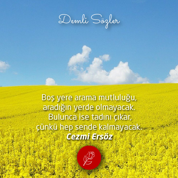 "Boş yere arama mutluluğu, aradığın yerde olmayacak. Bulunca ise tadını çıkar, çünkü hep sende kalmayacak."