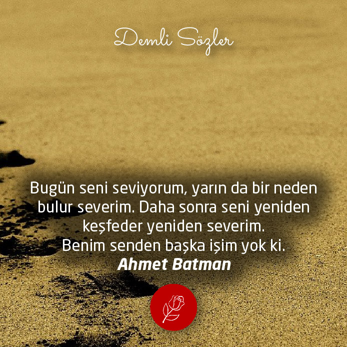 "Bugün seni seviyorum, yarın da bir neden bulur severim. Daha sonra seni yeniden keşfeder yeniden severim. Benim senden başka işim yok ki."