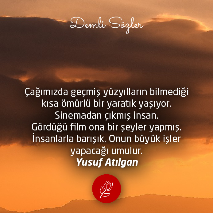 "Çağımızda geçmiş yüzyılların bilmediği, kısa ömürlü bir yaratık yaşıyor. Sinemadan çıkmış insan. Gördüğü film ona bir şeyler yapmış. İnsanlarla barışık. Onun büyük işler yapacağı umulur. "