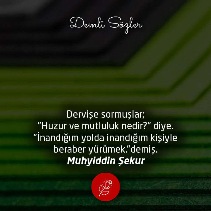 "Dervişe sormuşlar; "Huzur ve mutluluk nedir?" diye. "İnandığım yolda inandığım kişiyle beraber yürümek." demiş."