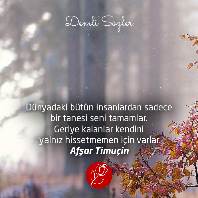 "Dünyadaki bütün insanlardan sadece bir tanesi seni tamamlar. Geriye kalanlar kendini yalnız hissetmemen için varlar."