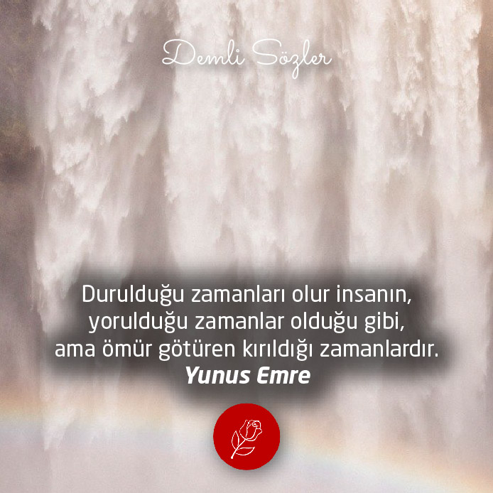 "Durulduğu zamanları olur insanın, yorulduğu zamanlar olduğu gibi, ama ömür götüren kırıldığı zamanlardır."