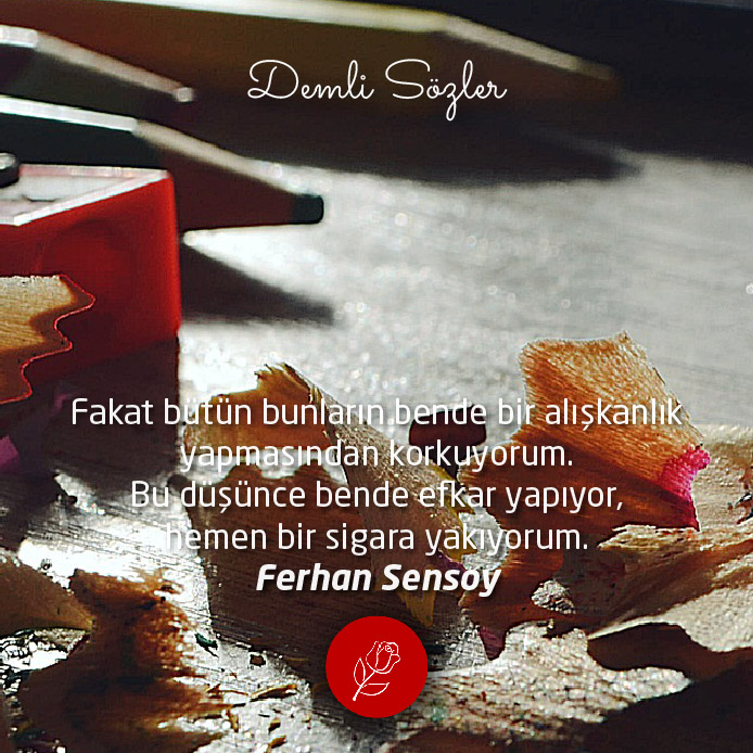 "Fakat bütün bunların bende bir alışkanlık yapmasından korkuyorum. Bu düşünce bende efkar yapıyor, hemen bir sigara yakıyorum."