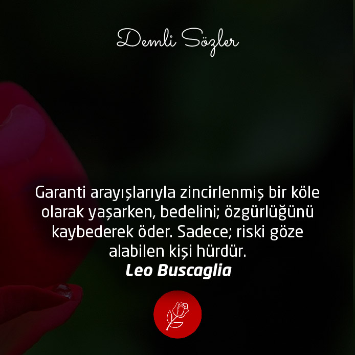 "Garanti arayışlarıyla zincirlenmiş bir köle olarak yaşarken, bedelini; özgürlüğünü kaybederek öder. Sadece; riski göze alabilen kişi hürdür."