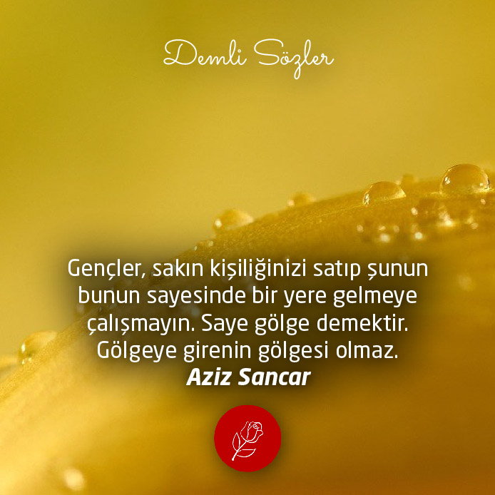 "Gençler, sakın kişiliğinizi satıp şunun bunun sayesinde bir yere gelmeye çalışmayın. Saye gölge demektir. Gölgeye girenin gölgesi olmaz."