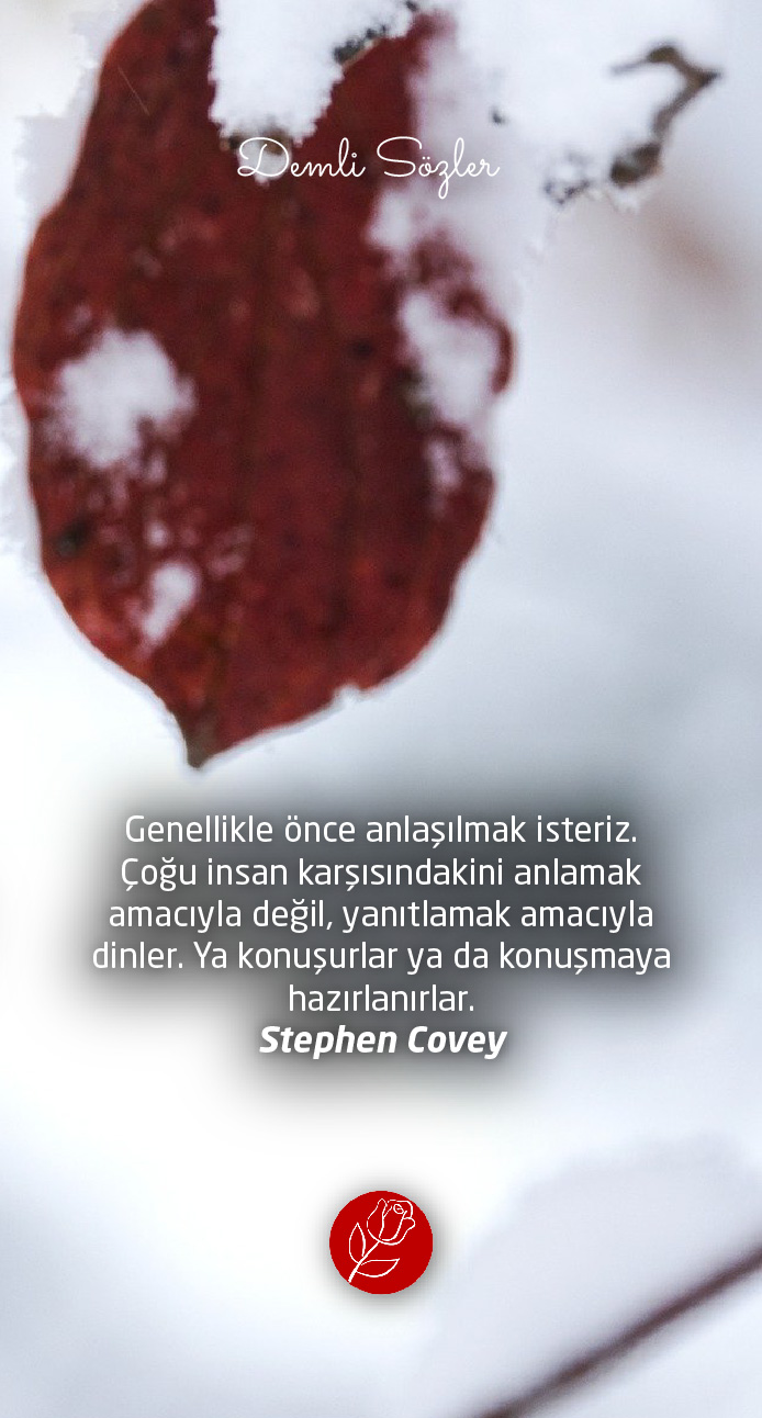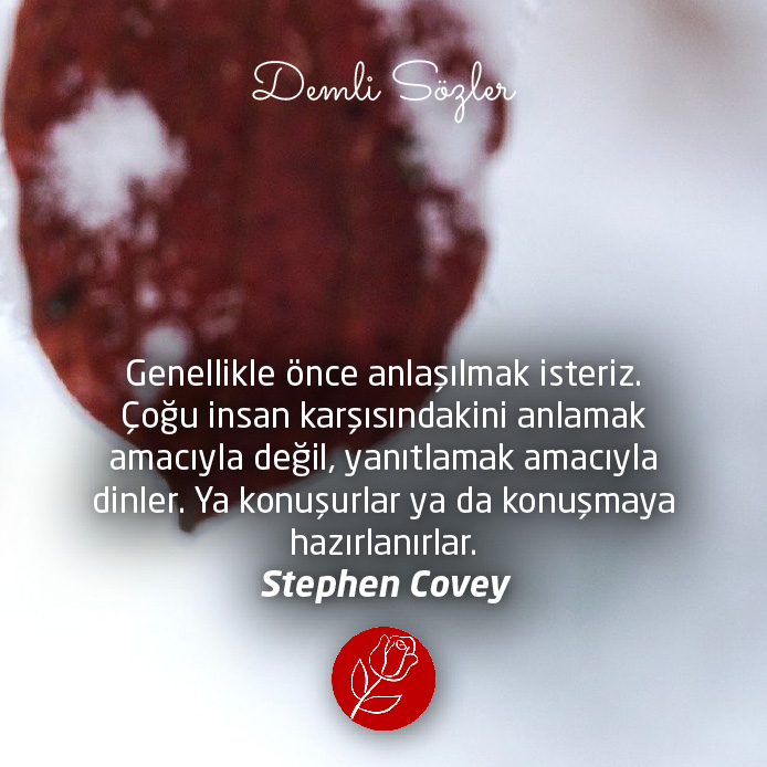 "Genellikle önce anlaşılmak isteriz. Çoğu insan karşısındakini anlamak amacıyla değil, yanıtlamak amacıyla dinler. Ya konuşurlar ya da konuşmaya hazırlanırlar. "
