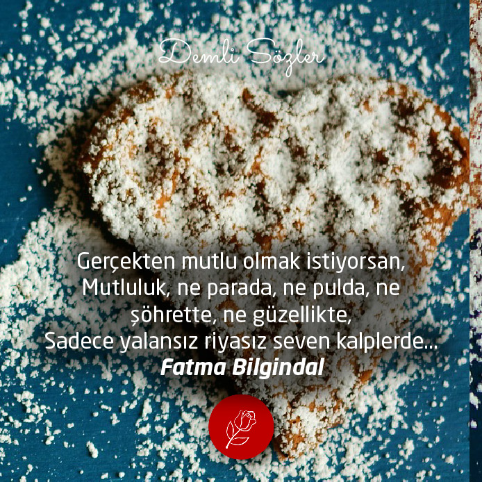 "Gerçekten mutlu olmak istiyorsan, Mutluluk, ne parada, ne pulda, ne şöhrette, ne güzellikte, Sadece yalansız riyasız seven kalplerde... "