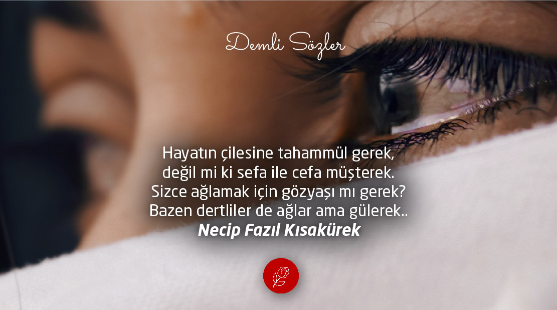 "Hayatın çilesine tahammül gerek, değil mi ki sefa ile cefa müşterek. Sizce ağlamak için gözyaşı mı gerek? Bazen dertliler de ağlar ama gülerek.."