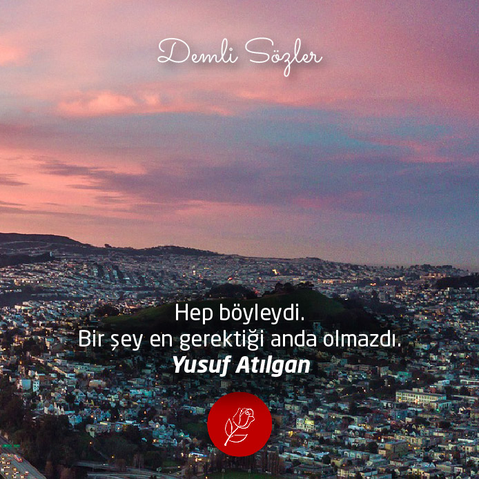 "Hep böyleydi. Bir şey en gerektiği anda olmazdı."