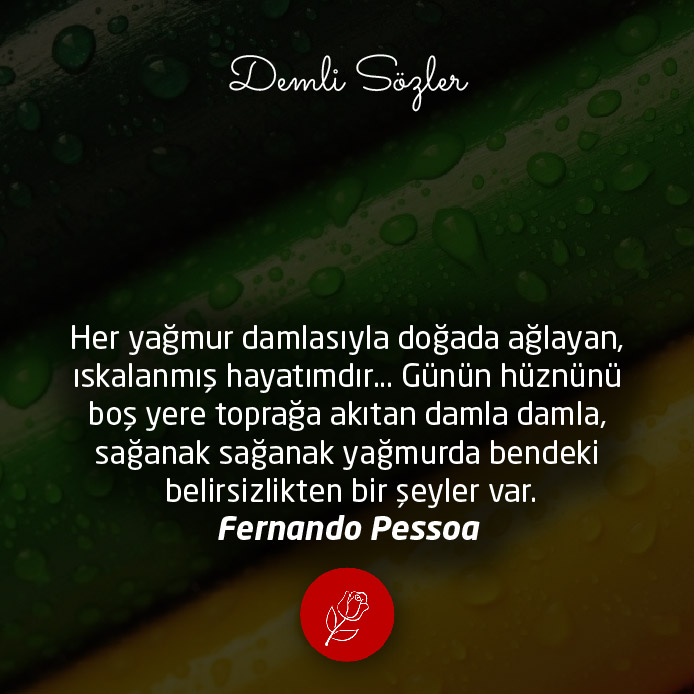 "Her yağmur damlasıyla doğada ağlayan, ıskalanmış hayatımdır... Günün hüznünü boş yere toprağa akıtan damla damla, sağanak sağanak yağmurda bendeki belirsizlikten bir şeyler var."
