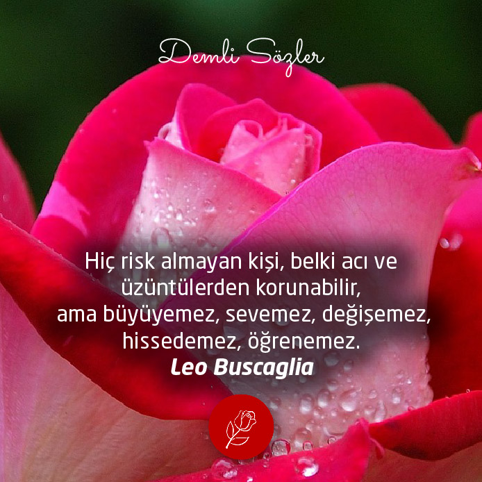 "Hiç risk almayan kişi, belki acı ve üzüntülerden korunabilir, ama büyüyemez, sevemez, değişemez, hissedemez, öğrenemez."