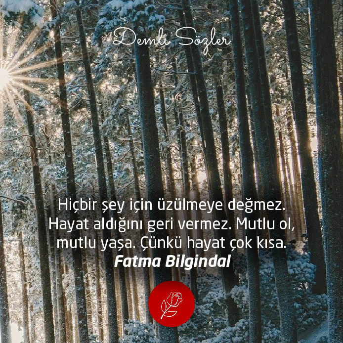 "Hiçbir şey için üzülmeye değmez. Hayat aldığını geri vermez. Mutlu ol, mutlu yaşa. Çünkü hayat çok kısa."