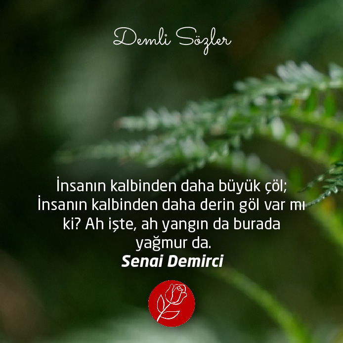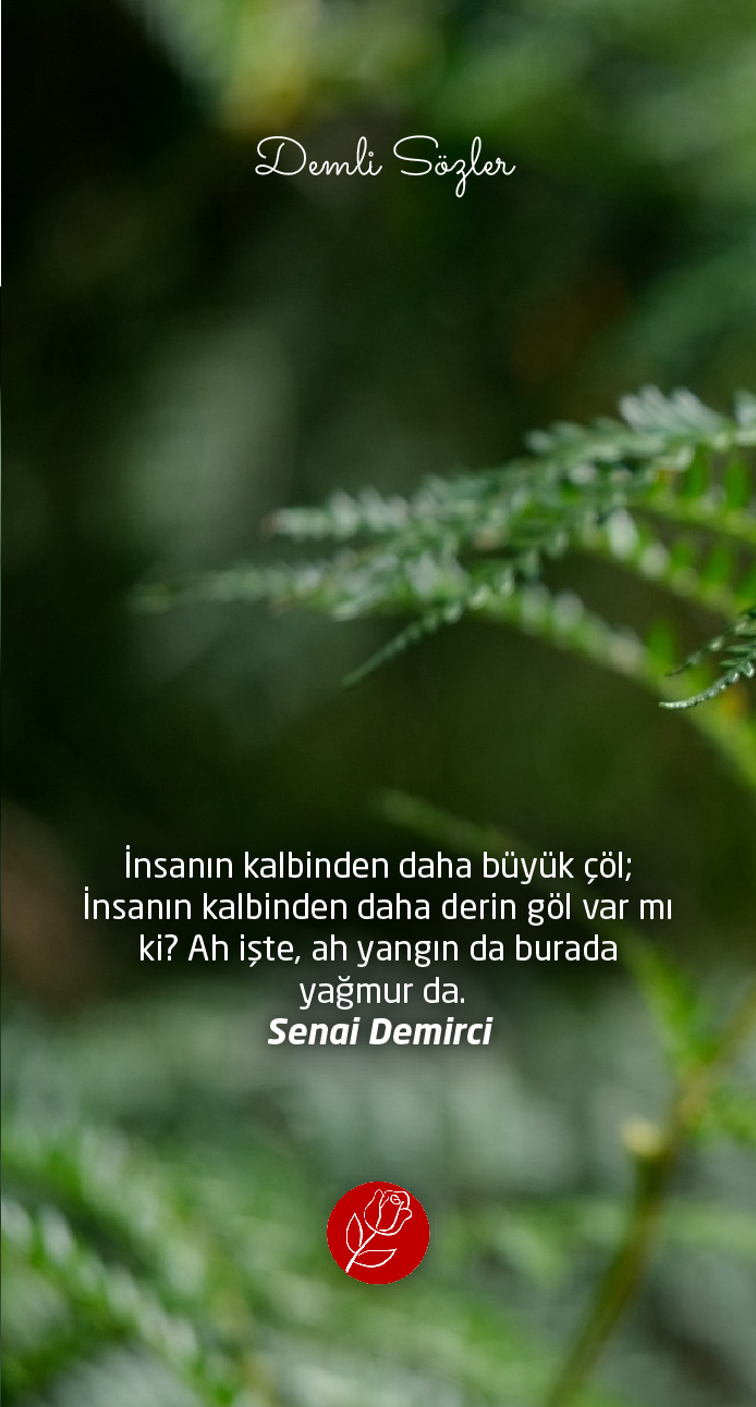"İnsanın kalbinden daha büyük çöl; İnsanın kalbinden daha derin göl var mı ki? Ah işte, ah yangın da burada yağmur da."