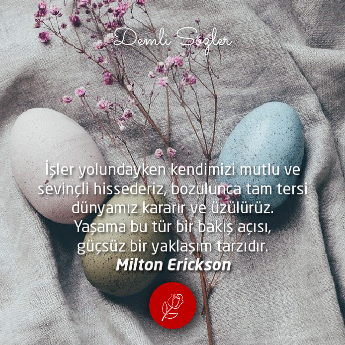 "İşler yolundayken kendimizi mutlu ve sevinçli hissederiz, bozulunca tam tersi dünyamız kararır ve üzülürüz. Yaşama bu tür bir bakış açısı, güçsüz bir yaklaşım tarzıdır."