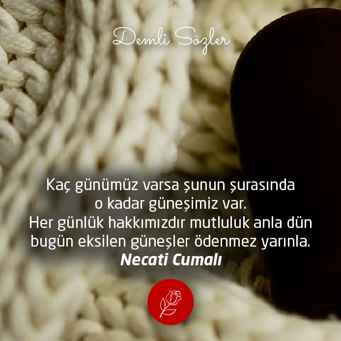 "Kaç günümüz varsa şunun şurasında o kadar güneşimiz var. Her günlük hakkımızdır mutluluk anla dün bugün eksilen güneşler ödenmez yarınla."