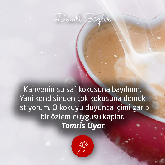 "Kahvenin şu saf kokusuna bayılırım. Yani kendisinden çok kokusuna demek istiyorum. O kokuyu duyunca içimi garip bir özlem duygusu kaplar."