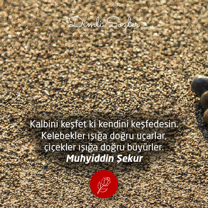 "Kalbini keşfet ki kendini keşfedesin. Kelebekler ışığa doğru uçarlar, çiçekler ışığa doğru büyürler."