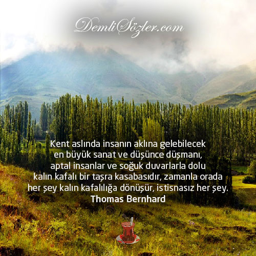 "Kent aslında insanın aklına gelebilecek en büyük sanat ve düşünce düşmanı, aptal insanlar ve soğuk duvarlarla dolu kalın kafalı bir taşra kasabasıdır, zamanla orada her şey kalın kafalılığa dönüşür, istisnasız her şey."