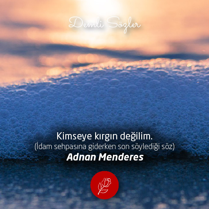 "Kimseye kırgın değilim. (İdam sehpasına giderken son söylediği söz)"