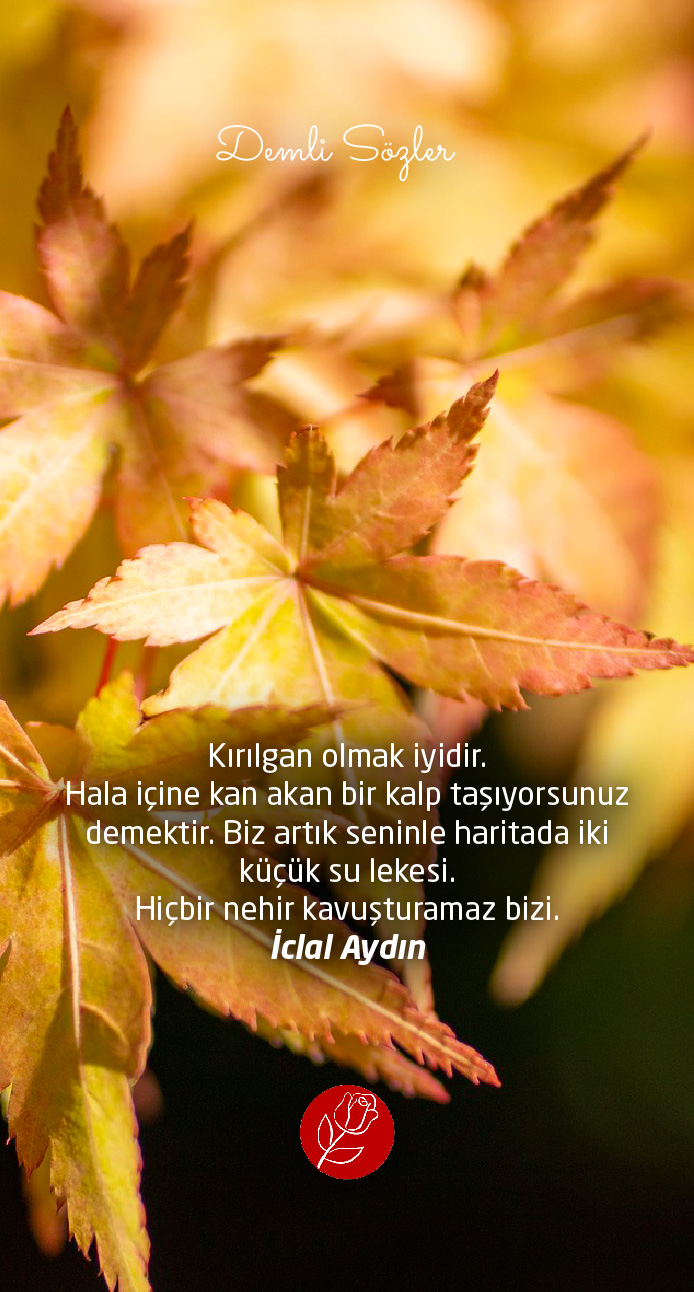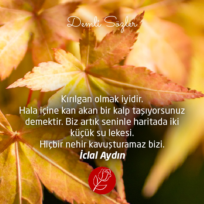 "Kırılgan olmak iyidir. Hala içine kan akan bir kalp taşıyorsunuz demektir. Biz artık seninle haritada iki küçük su lekesi. Hiçbir nehir kavuşturamaz bizi. "