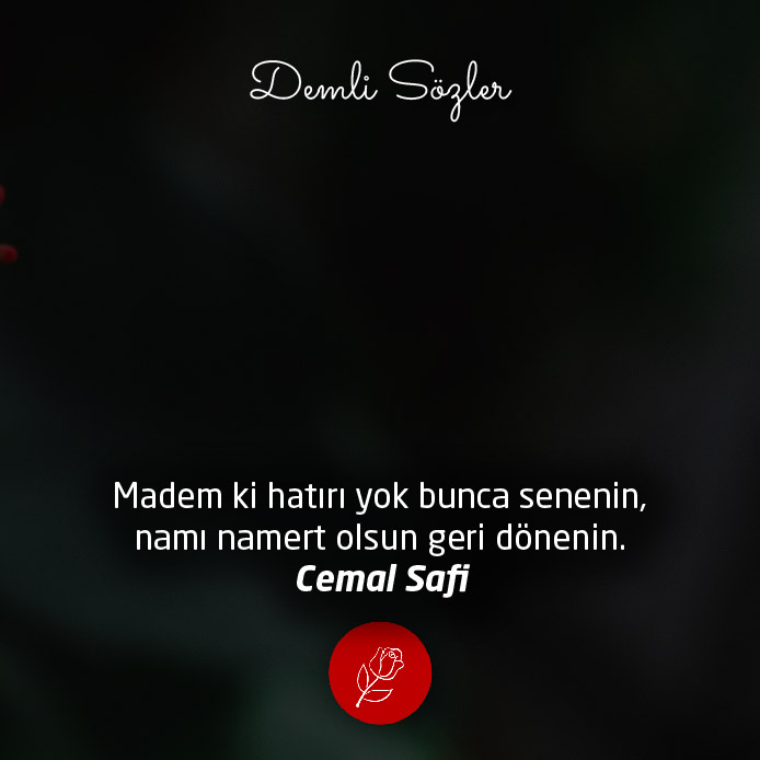 "Madem ki hatırı yok bunca senenin, namı namert olsun geri dönenin."
