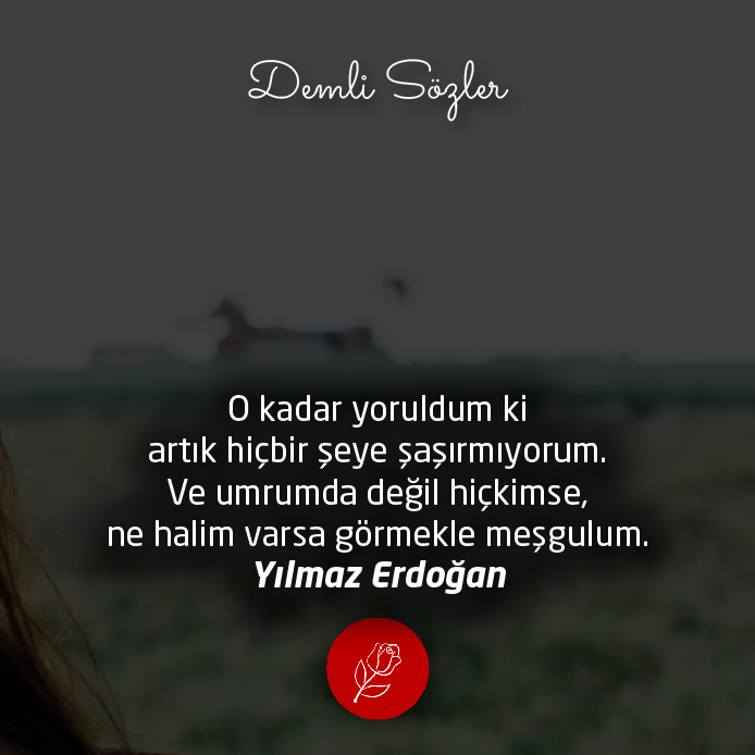 "O kadar yoruldum ki artık hiçbir şeye şaşırmıyorum. Ve umrumda değil hiçkimse, ne halim varsa görmekle meşgulum."