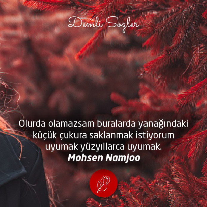 "Olurda olamazsam buralarda yanağındaki küçük çukura saklanmak istiyorum uyumak yüzyıllarca uyumak."