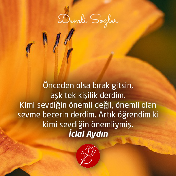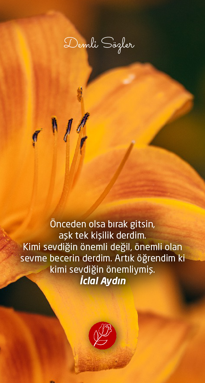"Önceden olsa bırak gitsin, aşk tek kişilik derdim. Kimi sevdiğin önemli değil, önemli olan sevme becerin derdim. Artık öğrendim ki kimi sevdiğin önemliymiş. "