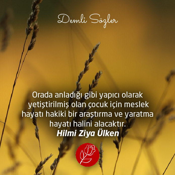"Orada anladığı gibi yapıcı olarak yetiştirilmiş olan çocuk için meslek hayatı hakiki bir araştırma ve yaratma hayatı halini alacaktır. "