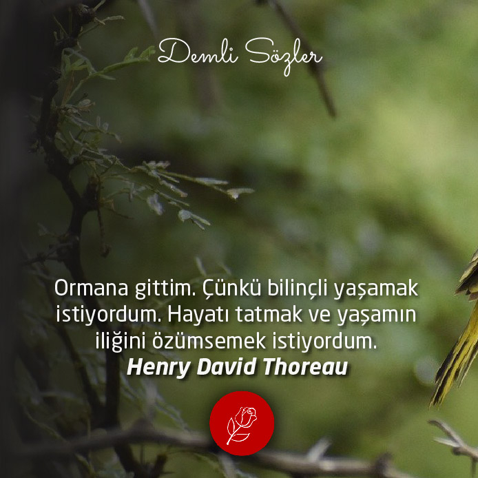 "Ormana gittim. Çünkü bilinçli yaşamak istiyordum. Hayatı tatmak ve yaşamın iliğini özümsemek istiyordum. "