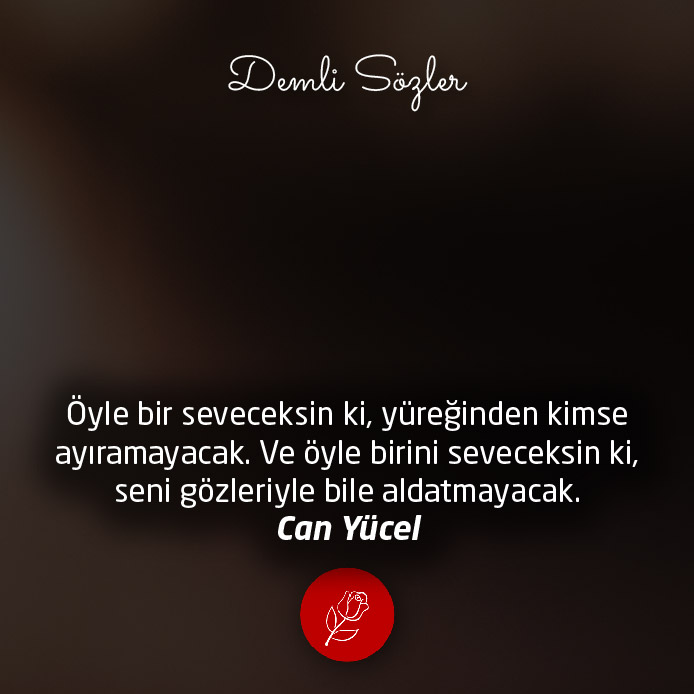 "Öyle bir seveceksin ki, yüreğinden kimse ayıramayacak. Ve öyle birini seveceksin ki, seni gözleriyle bile aldatmayacak."