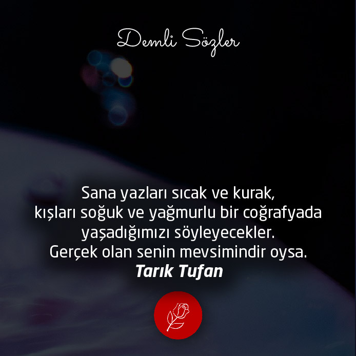 "Sana yazları sıcak ve kurak, kışları soğuk ve yağmurlu bir coğrafyada yaşadığımızı söyleyecekler. Gerçek olan senin mevsimindir oysa."