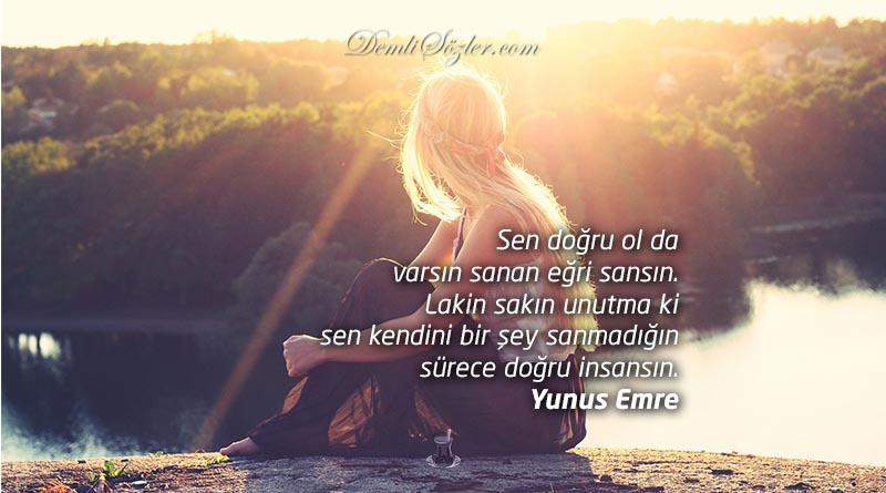 "Sen doğru ol da varsın sanan eğri sansın. Lakin sakın unutma ki sen kendini bir şey sanmadığın sürece doğru insansın."