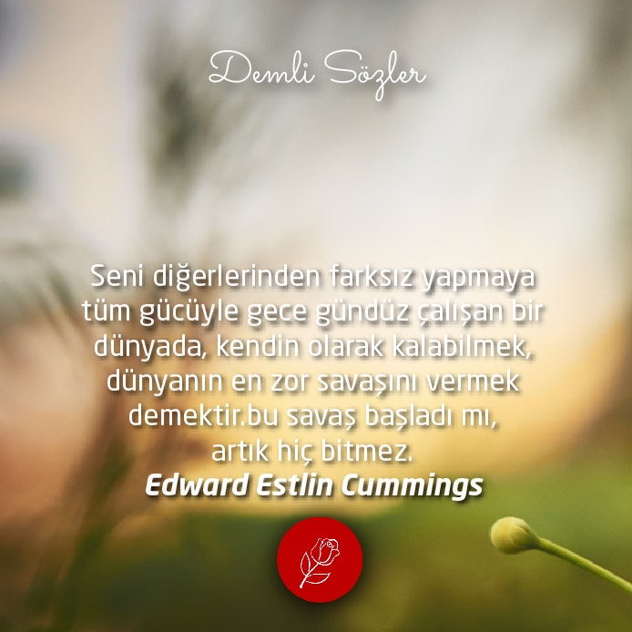 "Seni diğerlerinden farksız yapmaya tüm gücüyle gece gündüz çalışan bir dünyada, kendin olarak kalabilmek, dünyanın en zor savaşını vermek demektir bu savaş başladı mı, artık hiç bitmez."