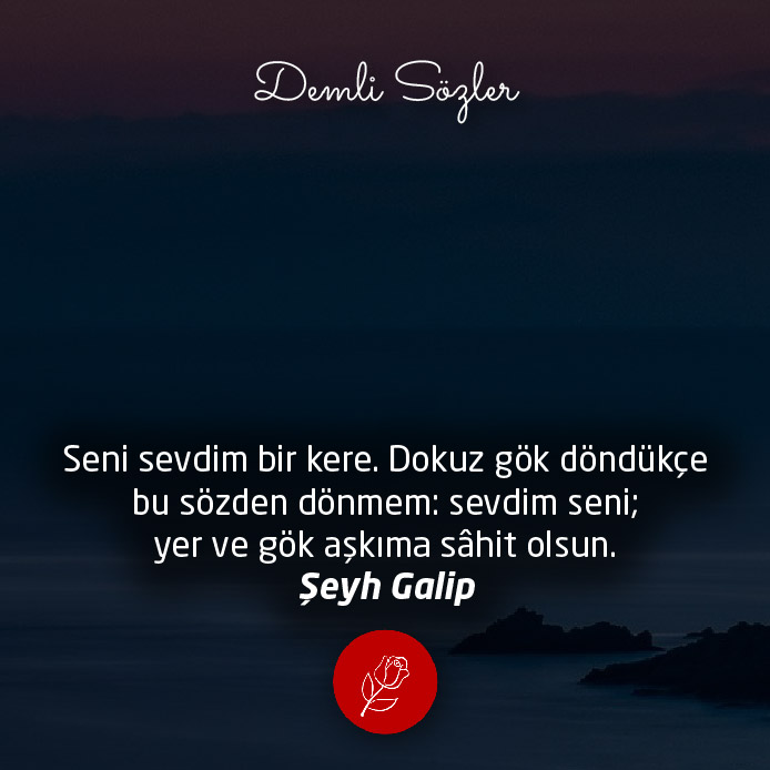 "Seni sevdim bir kere. Dokuz gök döndükçe bu sözden dönmem: sevdim seni; yer ve gök aşkıma sâhit olsun."