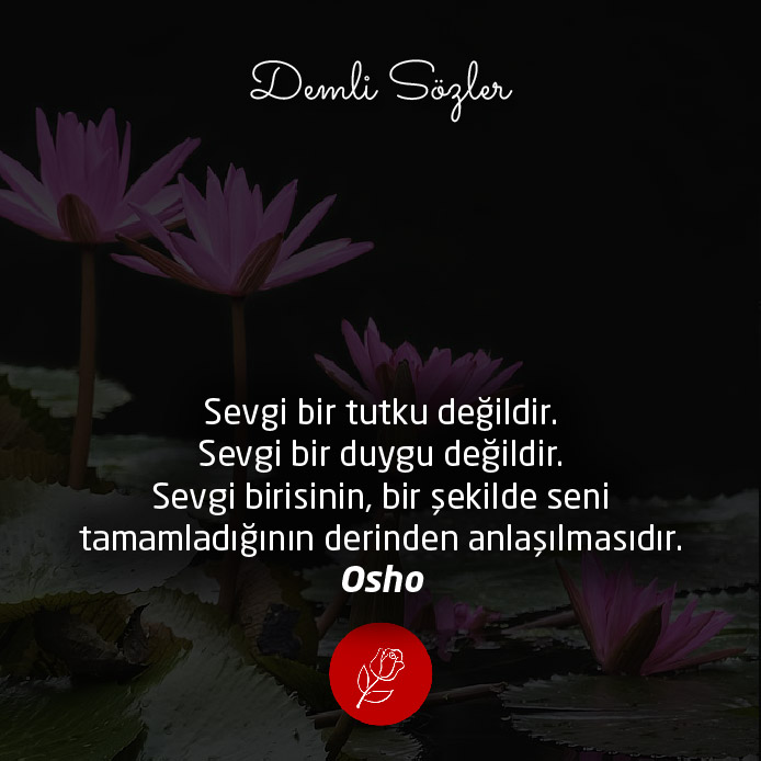 "Sevgi bir tutku değildir. Sevgi bir duygu değildir. Sevgi birisinin, bir şekilde seni tamamladığının derinden anlaşılmasıdır."