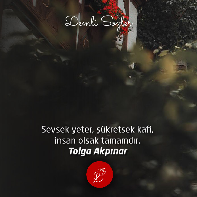 "Sevsek yeter, şükretsek kafi, insan olsak tamamdır."