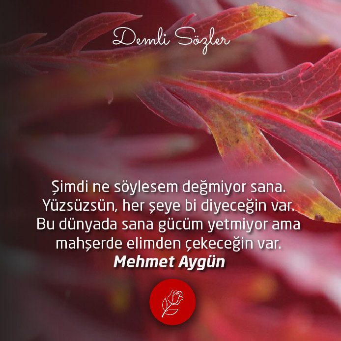 "Şimdi ne söylesem değmiyor sana. Yüzsüzsün, her şeye bi diyeceğin var. Bu dünyada sana gücüm yetmiyor ama mahşerde elimden çekeceğin var."