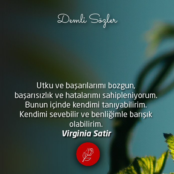 "Utku ve başarılarımı, bozgun, başarısızlık ve hatalarımı sahipleniyorum. Bunun içinde kendimi tanıyabilirim. Kendimi sevebilir ve benliğimle barışık olabilirim."
